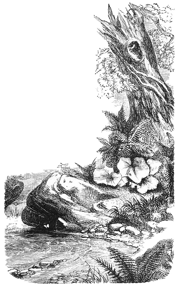 A black, bare, bleak-looking rock it was, but canopied over with the greenest of green moss and trailing saxifrages, bearing tiny flowerets of pink and white and blue.