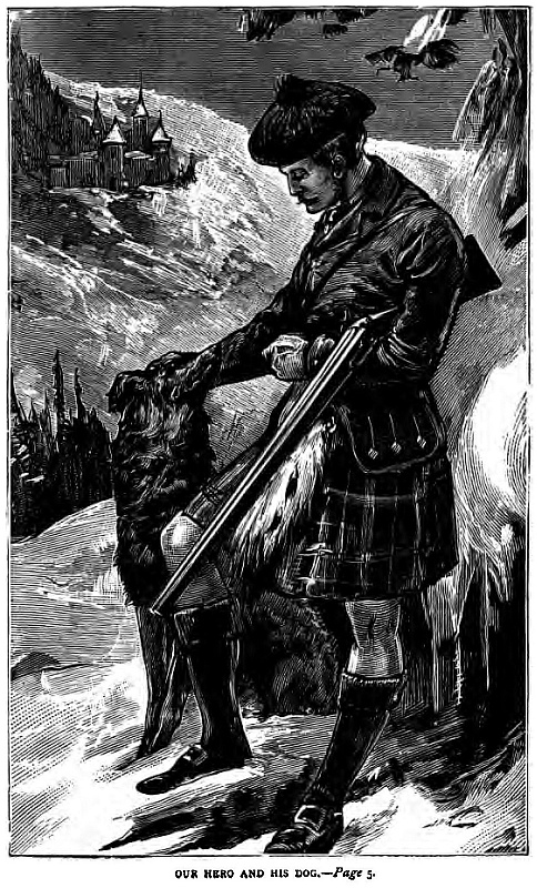 It was winter. Allan McGregor stood, gun in hand, leaning against a rock half-way down the mountain-side, and, with the exception of himself and the stately deer-hound that lay at his feet, there was no sign of any living thing in all the glen; and dreary and desolate in the extreme was the landscape all around him. Glentroom in the summer time, when the braes were all green with the feathery birches, and the hillsides ablaze with the purple bloom of the heather, must have been both pleasant and romantic; but the birch-trees were now leafless and bare, the mountains were clad in snow, and the rock-bound lake, that lay far beneath, was leaden and grey like the sky itself, except where its waves were broken into foam by the snow-wind. That snow-wind blew from the north, and there was a sound in its voice, as it sighed through the withered breckans and moaned fitfully among the rocks and crags, that told of a coming storm.