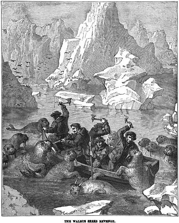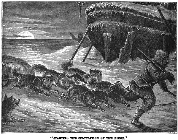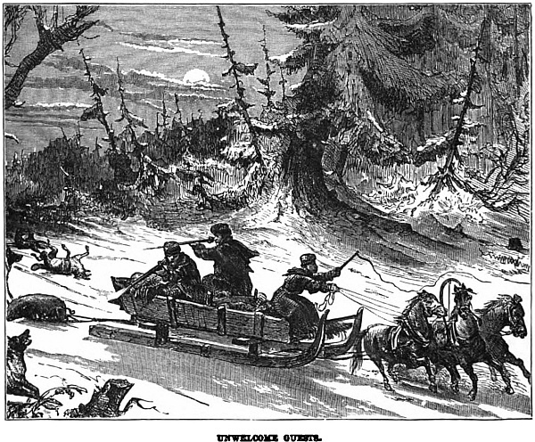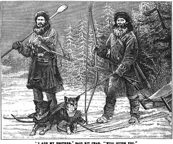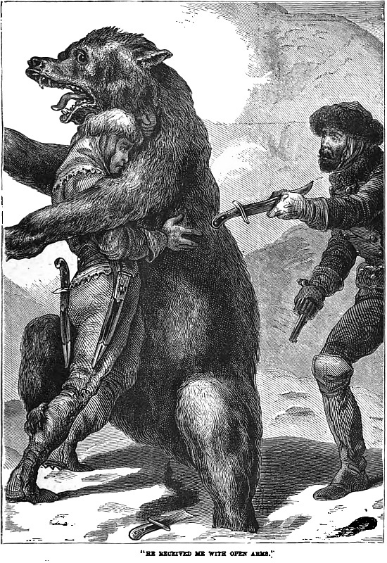 “We did not forget our own larder, you may be sure, and right thankful were we that we had not forgotten to take with us a traveller’s cooking stove, with a store of oil by way of fuel. Not that we expected an Arctic winter by any means. Our guide, a sturdy bearded man of some fifty summers, had trapped in these wilds for more than twenty years, and could remember many a winter passing without the grass being even once covered with snow. But travellers should always be provided against even probabilities, and as it turned out it was well we were. We enjoyed Christmas in our rude log hut almost if not quite as well as if at home, and it would have done your heart good to have heard the merry songs we sang, or to have listened to the strange stories of our guide. No traveller’s tales were these, they were painted from the life and natural. The wolves used to come howling round our doors now of nights. A fall of snow, that came on about the beginning of the new year, seemed to make the creatures hungry. They came after the bones that were thrown out, at least that was how they pretended to account for their visit, but we knew well they would not hesitate a moment to attack the horses if they could only find a chance.