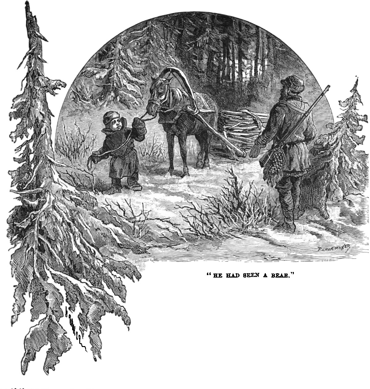 “One morning, greatly to our annoyance, we found the rude stable-door open, and our horses gone. But their tracks were fresh on the snow, and so we felt sure we soon should find them.