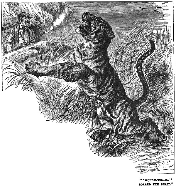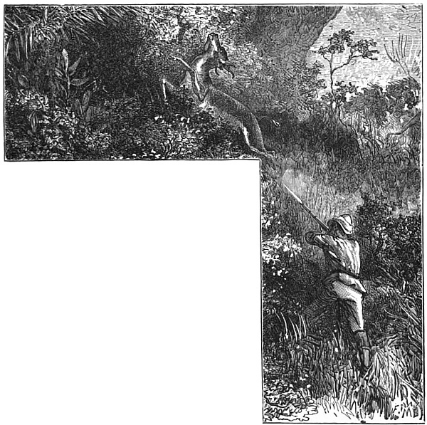 Frank trod on the tail of an iguana next day. The dragon, seven feet long, and fearful to behold, turned and snapped. Frank, armed with a stick, would not fly, but fought. The Scotchmen were delighted. They tossed their bonnets in the air, and shouted “Saint George for merrie England!” Never mind, they might laugh as they pleased; but Frank killed the dragon.
