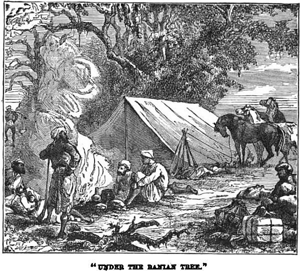 And here we have the five of them, mostly intent on the preparation of the evening meal. Lyell is cook to-night; and he evidently cooks from no badly-stored larder. Yonder hangs a lordly deer; wild-fowl they have in prolusion; and in a short time they will, doubtless, enjoy their al fresco dinner as only sportsmen can.
