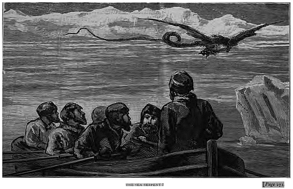 “They do. They marvel at our engines, as well they may. The gear, so simple and strong, that Ap and I invented for the shipping and unshipping of the rudder, and the easy method we have for elevating the screw out of the water and reducing the vessel to a sailing ship, they think little short of miraculous. They are astonished, too, at the extraordinary strength of build of the ship. Indeed, they are highly complimentary to us in their general admiration. But,” continued McBain, laughing aloud, “it would amuse you to hear the remarks of some of these good, innocent souls. The two 12-pounder Dalgrens are universal favourites. They pat them as if they loved them. One girl last Friday said ‘they just looked for a’ the warld like a couple o’ big iron soda-water bottles.’ They linger in the armoury; old Ap shows them our ‘express’ rifles, and our ‘bone-crushers,’ and the hardened and explosive bullets: then he takes them to the harpoon-room and shows them the harpoons, and the guns, and the electric apparatus, and all the other gear. They stare open-mouthed at the balloon-room and the sledge-lockers, but when they come to the door of the torpedo-chamber they simply hurry past with looks of awe. It is currently reported that we are bound for the very North Pole itself; I’m not sure we are not going to bring it back home with us. Anyhow, they say that as soon as we reach the ice, we are to fill our balloons, attaching one to each mast and funnel, and float away and away over the sea of ancient ice until we reach the Pole.”