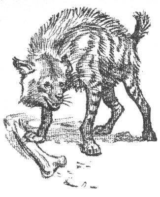 It was wonderful when[2] you came to look at him, to think that old One Eye ever could have been a swift runner, for his legs were no longer nor bigger than his arms. His body was long, heavily paunched and massive; his head hung forward on his hairy chest and he sat hunched over like an ape.