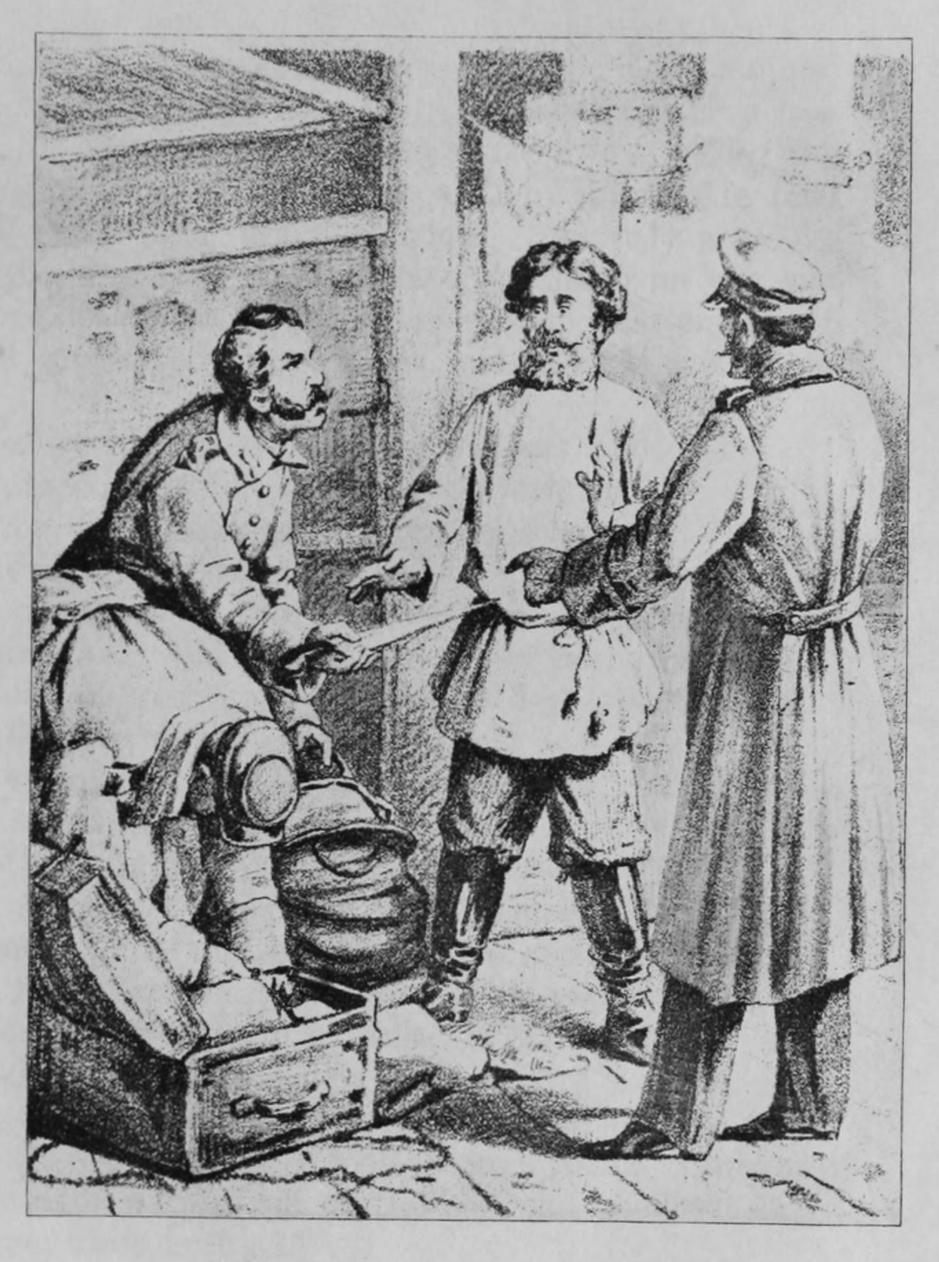 "Don't take it amiss, clean gentleman! My sister-in-law will not let a man without calluses sit down at the table. Wait awhile! Let the people eat first, and then you will get what is left."