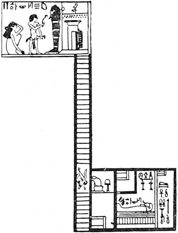 The plan of the tomb presents a marked contrast to the more familiar Theban burial places; but it becomes more intelligible when it is compared with those which were made at the heretic king’s capital during the time of Akhenaton.