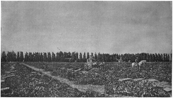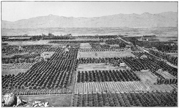 These fruit and horticultural lands are situated in the warm belt of the foot-hills of the Sierra Nevada, protected by sheltering hills, traversed by natural creeks and surrounded by the grandest scenery known to man. The famous Yosemite is almost within sight, and the high-peaked Sierra can be reached in a day’s journey. The Coast Range, with Mt. Diablo, is in full view, while the fresh breezes from the San Pablo Bay temper the climate, and contribute to make it one of the finest, most salubrious and most enjoyable in the world. Through the irrigation water always at the command of the horticulturist, our lands are being transformed into beautiful orchards, vineyards and meadows. The peach, the prune, the apricot, the pear and the raisin-grape are made to flourish, and the olive to produce its valuable oil, the orange and the lemon their golden fruit. The colonies already established are situated in the thermal belt of the Sierra, in the finest citrus region of the State, in a district equal to the best anywhere, and in a territory remarkable for its earliness and productiveness. Every variety of temperate and semi-tropical fruit is now growing within sight of the colonies,—the almond, the olive and orange upon the more elevated land; the peach, the prune, the apricot, the pear and the raisin-grape upon that of a more alluvial nature. The Rotterdam Colony contains now over a hundred settlers from Holland; other colonies are being established by English and American farmers, by doctors, lawyers and professional men of every station in life. The people whom we invite, and who have responded to our call, are the most desirable, the most intelligent, the most energetic and the most refined classes. They are now building up horticultural communities of the most prosperous nature.
