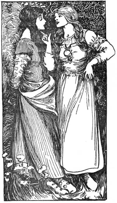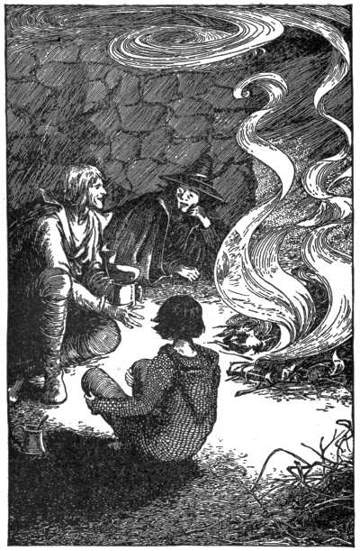 "It is difficult to answer a silly question," said the woman. "My sons are now at it, with their own hands. They are playing at shuttle-cock168 with the clouds, up there in the King's hall." And she pointed above.