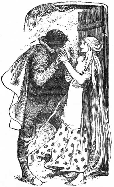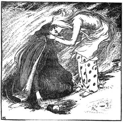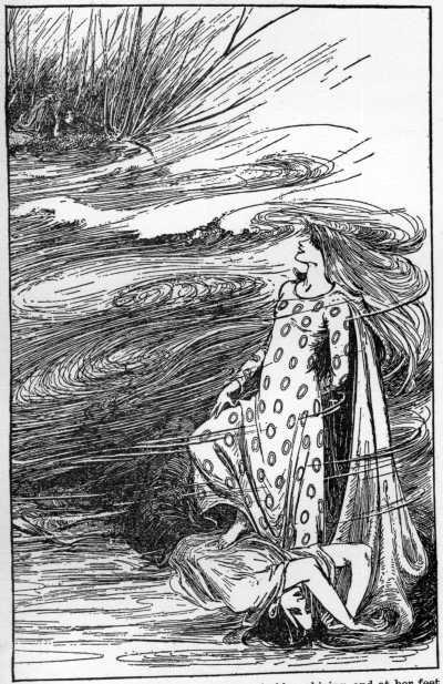 "Come nearer," said she, "and sit by the fire, and dry your clothes."