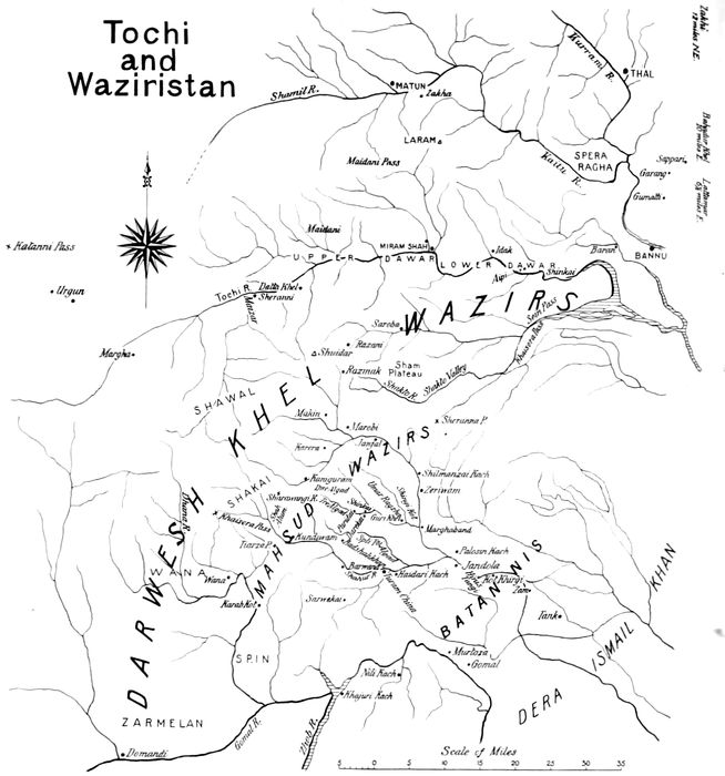 | Expedition against Umarzai Wazirs, 1852; against Kabul Khel Wazirs, 1859–60. Raids near Thal. Expedition against the Malik Shahi Wazirs, 1880. Attempt on Tank by Mahsuds in 1860. Expedition of same year; occupation of Kaniguram. Attack on Tank by Mahsuds in 1879. Expedition against Mahsuds in 1881. Ahmadzai division of Darwesh Khel ask to be allowed to become British subjects. Waziristan delimitation operations. Wana. Operations of Waziristan Field Force, 1894. Maizar affair. Operations of the Tochi Field Force, 1897–98. Operations against the Mahsuds, 1900–1901. Expedition against the Kabul Khels, 1901–2 | pp. 435–474 |