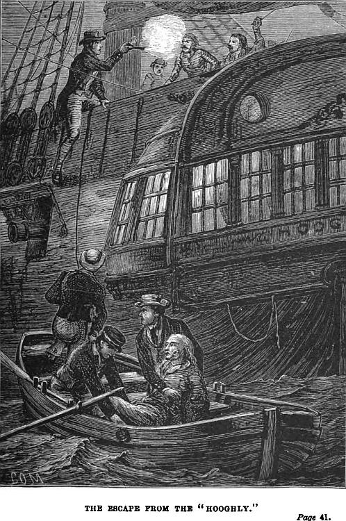 “Ah, but I did though,” said Captain Wilmore, “the Hooghly herself, as large as life. The scoundrels had knocked away her figure-head, and painted her, name and all, anew; but I knew her in a moment, as well as I know my own face. We hailed her, and the moment they saw me on the quarter-deck, they cut their cable, and tried to run for it. But we were just entering the harbour, prepared for action, and sent such a broadside into her as knocked all the mischief out of her in a jiffey. O’Hara was killed, and White mortally wounded, and as for Andy Duncan, he was run up to the yardarm and hanged the next morning. The others were put into irons, and received various sentences. Some had seven dozen. Others were simply dismissed and sent home.”