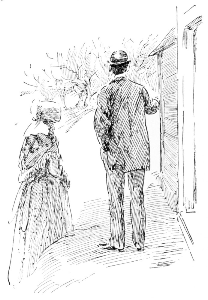 Mr. Skinner might have told him that this variety of gray paint is highly popular in some rural districts, and is made by mixing lamp-black and ball-blue with a low grade of white lead. But he did not say it; and he drove away as soon as he conveniently could, after formally introducing him to Mrs. Sparhawk, a gaunt, stern-faced, silent, elderly woman. Mrs. Sparhawk was to take charge of his bachelor establishment during the day time. Mrs. Sparhawk cooked him a meal for which she very properly apologized. Then she{5} returned to her kitchen to “clean up.” Mr. Brimmington went to the front door, partly to look out upon his property, and partly to turn his back on the gray paint. There were no steps before the front door, but a newly-graded mound or earthwork about the size of a half-hogshead. He looked out upon his apple-orchard, which was further away than he had expected to find it. It had been out of bearing for ten years, but this Mr. Brimmington did not know. He did know, however, that the whole outlook was distinctly dreary.