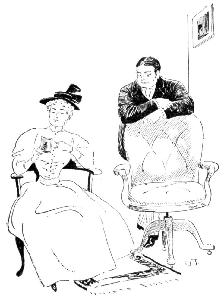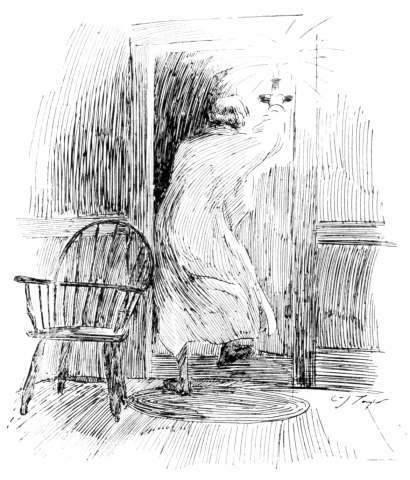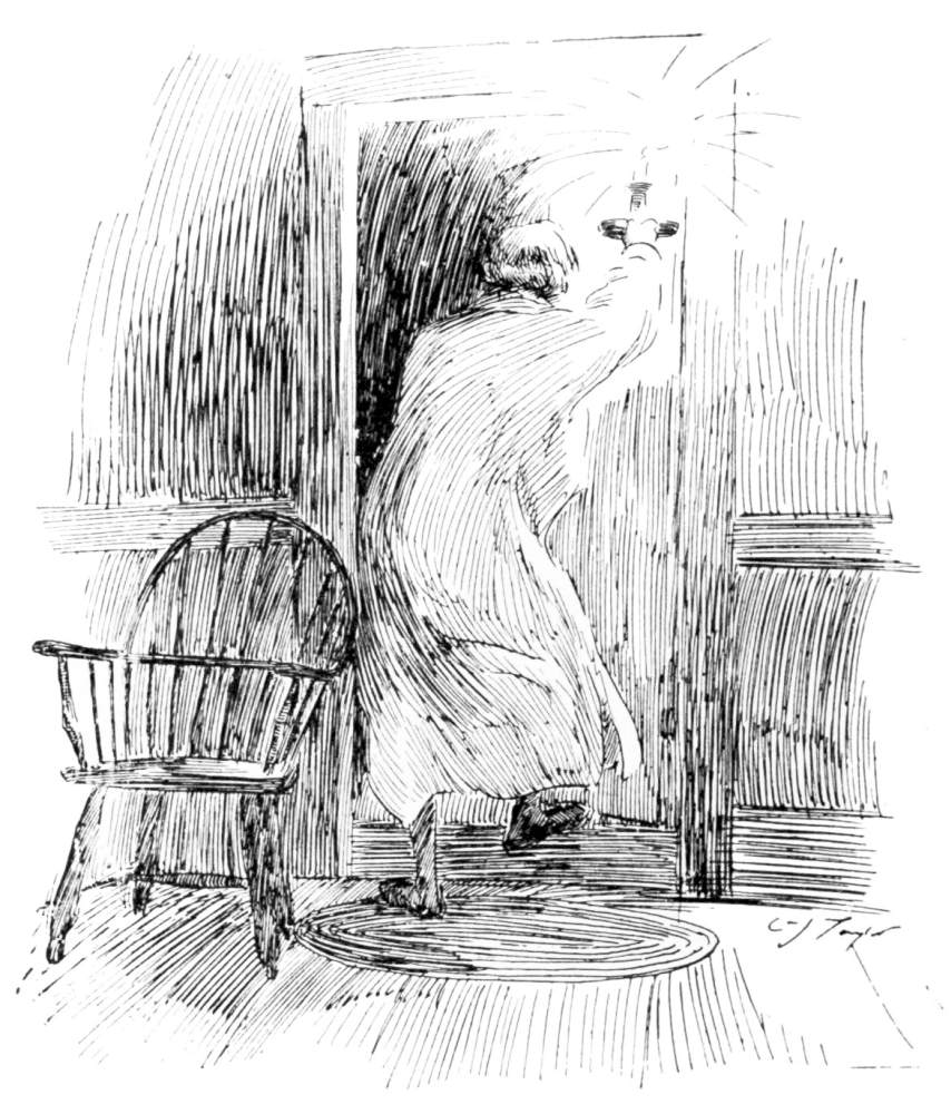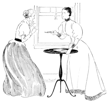 Miss Billington (as before, but with clenched hands and set lips).—“That is neither one of those girls. They haven’t got the sand. Whoever it is, that settles it.” She flung open the door and swept into the room.