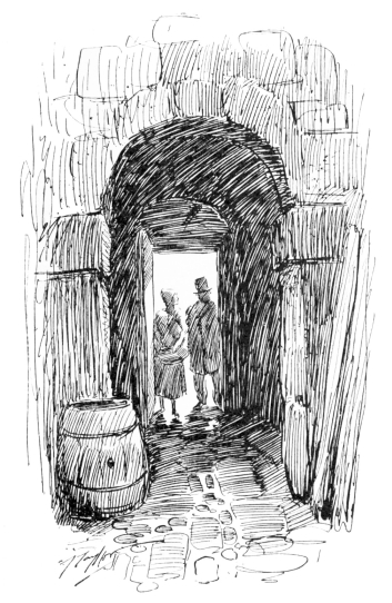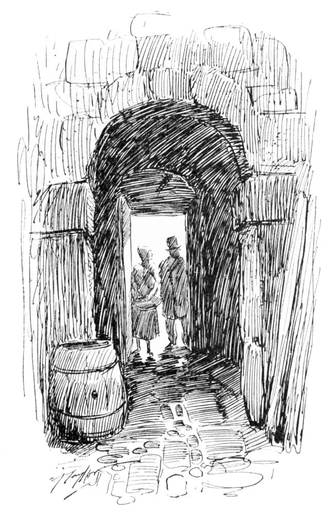 Mr. Egg was not in the least shocked. He cast his blinking eyes about him at the filthy{28} roadway, at the narrow old stone houses that crowded both sides of the street with the peaked roofs of their over-hanging upper-stories, almost shutting out the sky above his head, at the countless century-old stains of damp and rust and shameful soilure upon their dull faces, and he said simply: