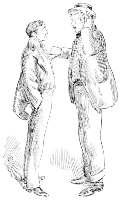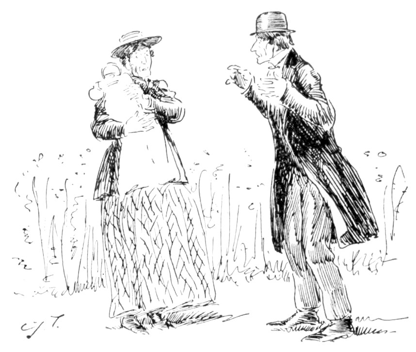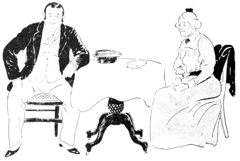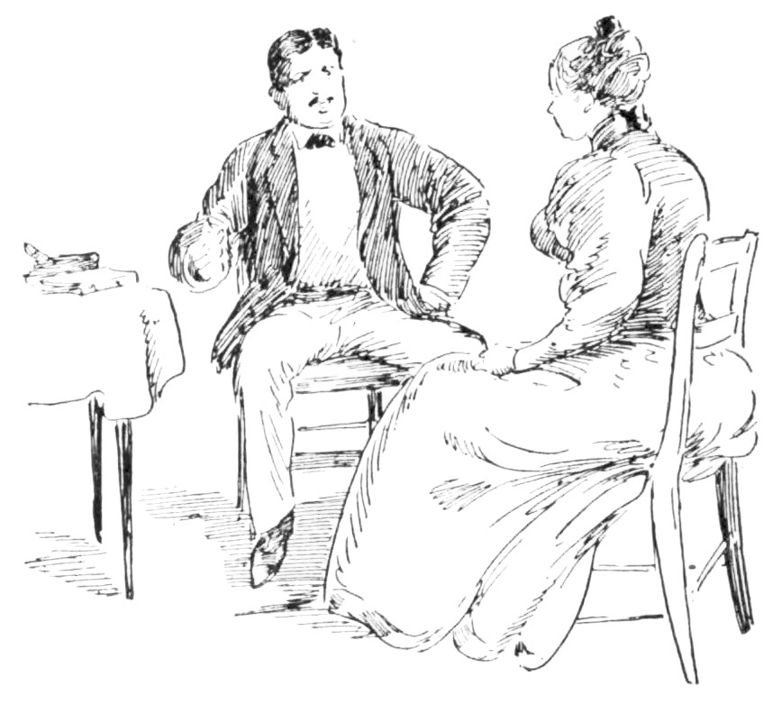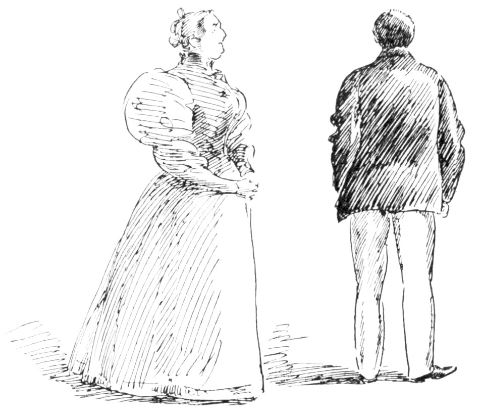 Mr. Pett stuck a crooked forefinger into his{209} lady-love’s face, and gazed at her with such an intensity that she was obliged at last to return his penetrating gaze.