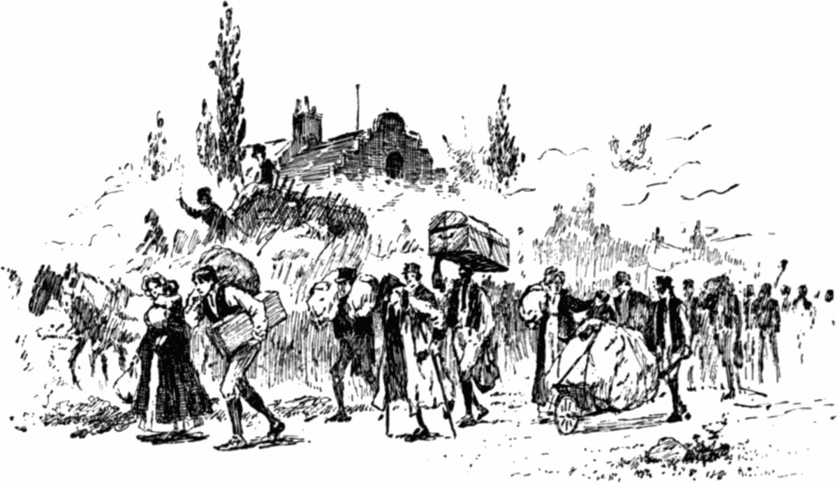 They were close behind him, indeed. In[132] half a minute the roar of the mob filled the street with one terrible howl and shriek of animal rage, heard high above the tramp of half a thousand feet; and the beasts of disorder, gathered from all the city's holes and dens of crime, wild for rapine and outrage, burst upon them, sweeping up the steps, hammering at the[133] great doors, crying for the blood of the helpless and the innocent.