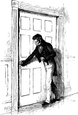 "We'll see about it," said Mr. Dolph, smiling again; and they walked on in silence to Mrs. Kilmaster's door, where he struck the knocker, and a neat mulatto girl opened the narrow door. Then he patted his boy on the[15] head and bade him good-by for the morning, and told him to be a good boy at school. He took a step or two and looked back. Young Jacob lingered on the step, as if he had a further communication to make. He paused.