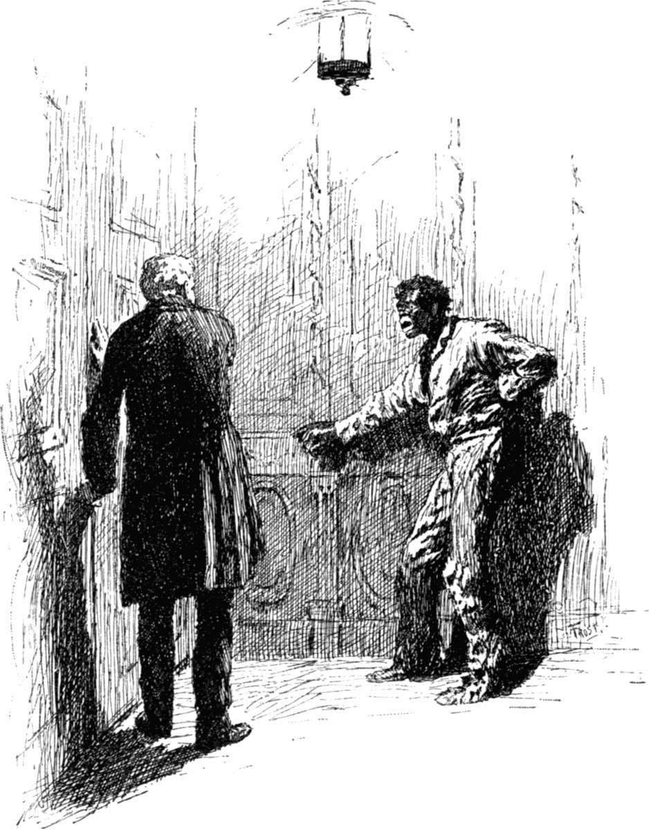 A negro's face, almost gray in its mad fear, stared into his with a desperate appeal which the lips could not utter. Dolph drew the man in, and shut the door behind him. The negro leaned, trembling and exhausted, against the wall.