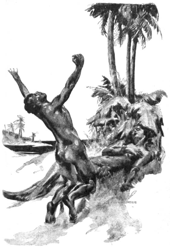 Maru, who was slightly in front, turned and found her gone. She had been seized with cramp, the cramp that comes from over-exertion, but he did not know that. The lagoon was free of sharks, but despite that fact and the fact that he did not fear them, he fancied for one fearful moment that a shark had taken her.