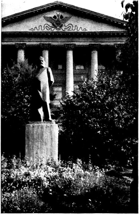 Art, literature, science, all the refinements and elaboration of life, all that we mean by “civilisation,” were involved in this torrential catastrophe. For a time the stablest thing in Russia culture was the theatre. There stood the theatres, and nobody wanted to loot them or destroy them; the artists were accustomed to meet and work in them and went on meeting and working; the tradition of official subsidies held good. So quite amazingly the Russian dramatic and operatic life kept on through the extremest storms of violence, and keeps on to this day. In Petersburg we found there were more than forty shows going on every night; in Moscow we found very much the same state of affairs. We heard Shalyapin, greatest of actors and singers, in The Barber of Seville and in Chovanchina; the admirable orchestra was variously attired, but the conductor still held out valiantly in swallow tails and a white tie; we saw a performance of Sadko, we saw Monachof in The Tzarevitch 46Alexei and as Iago in Othello (with Madame Gorky—Madame Andreievna—as Desdemona). When one faced the stage, it was as if nothing had changed in Russia; but when the curtain fell and one turned to the audience one realised the revolution. There were now no brilliant uniforms, no evening dress in boxes and stalls. The audience was a uniform mass of people, the same sort of people everywhere, attentive, good-humoured, well-behaved and shabby. Like the London Stage Society, one’s place in the house is determined by ballot. And for the most part there is no paying to go to the theatre. For one performance the tickets go, let us say, to the professional unions, for another to the Red Army and their families, for another to the school children, and so on. A certain selling of tickets goes on, but it is not in the present scheme of things.