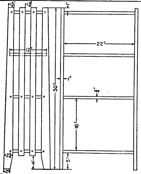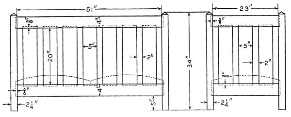 In laying out the mortises for the lower rails, care must be taken to have them set 1/8 in. farther in than the upper rails so the slats may come outside.