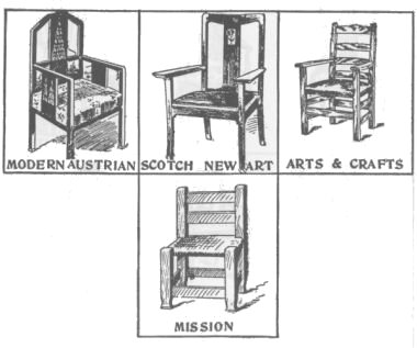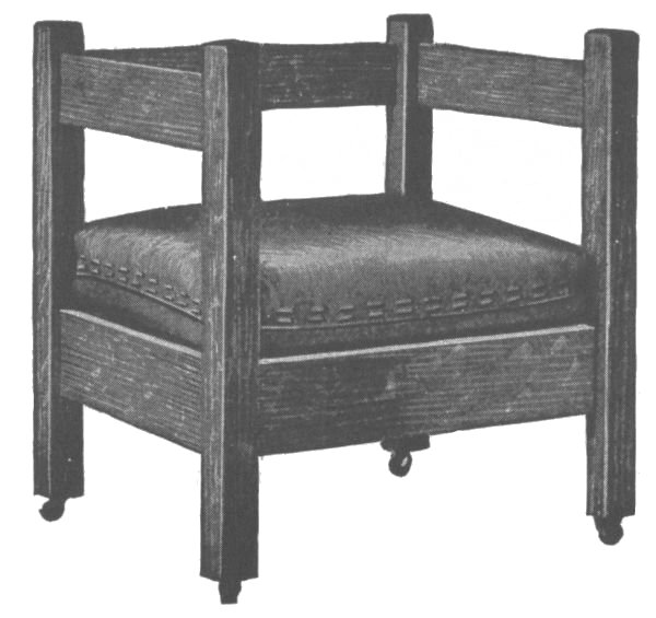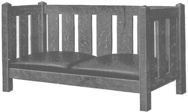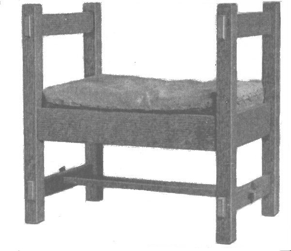 When the window seat is complete go over it carefully and scrape all the surplus glue from about the joints, as the finish will not take where there is any glue. Remove all rough spots with fine sandpaper,[109] then apply the stain best liked, which may be any one of the many mission stains supplied by the trade for this purpose. If this window seat is well made and finished, it will be an ornament to any home.