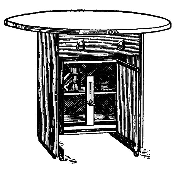 The horizontal piece for the drawer to rest upon is now put in place and fastened by driving nails through the vertical pieces. The drawer is made to fit this opening, and it should be lined with velvet to keep the silverware in good condition. [107]