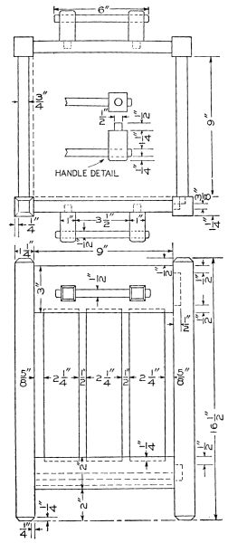 The two end frames can now be glued and clamped together and set away to dry. Put all the parts together before gluing to see that they fit square and tight.