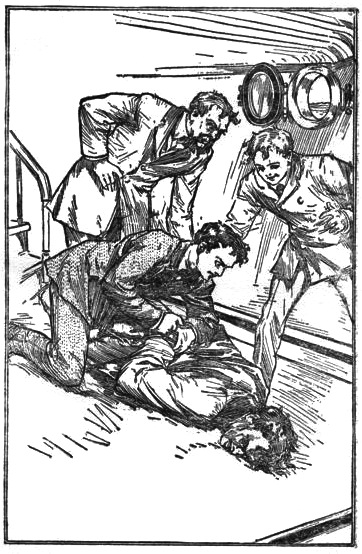 Joe Dawson rushed in from the porch, but too late to be of immediate help. Officer Hunter had sprawled badly, and Mr. Seaton had halted to aid him to his feet.