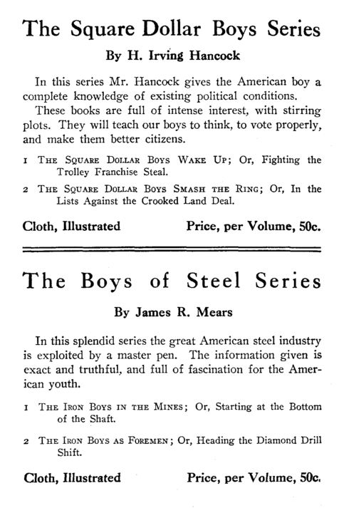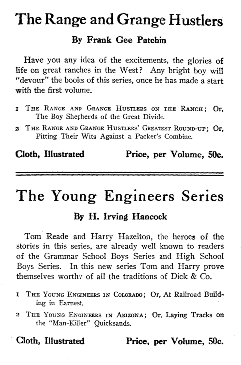 “Oh it’s all right on the pay end,” agreed Hank, readily. “But just think of a young fellow, full of life and hope, with a dozen ambitions 8 and a hustling nature, taking up with a job of this kind!”