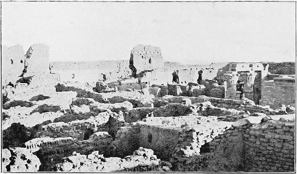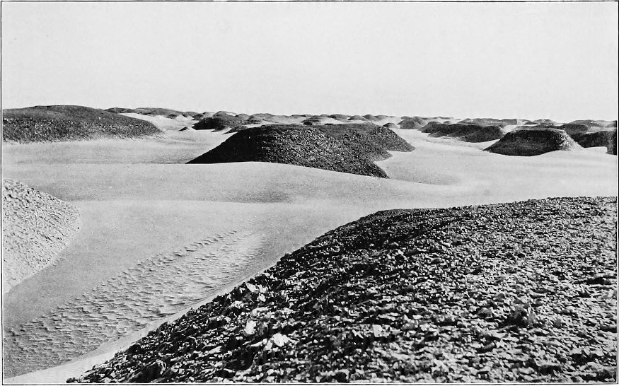 [6]That even occasional rains can effect a considerable amount of erosion of soft materials is shown by the present state of these domes, from which a skin of some thickness has been washed away, leaving the surfaces bristling with the sharp fragments of rock which were included in the original mixture of sand and clay from which the bricks were manufactured.