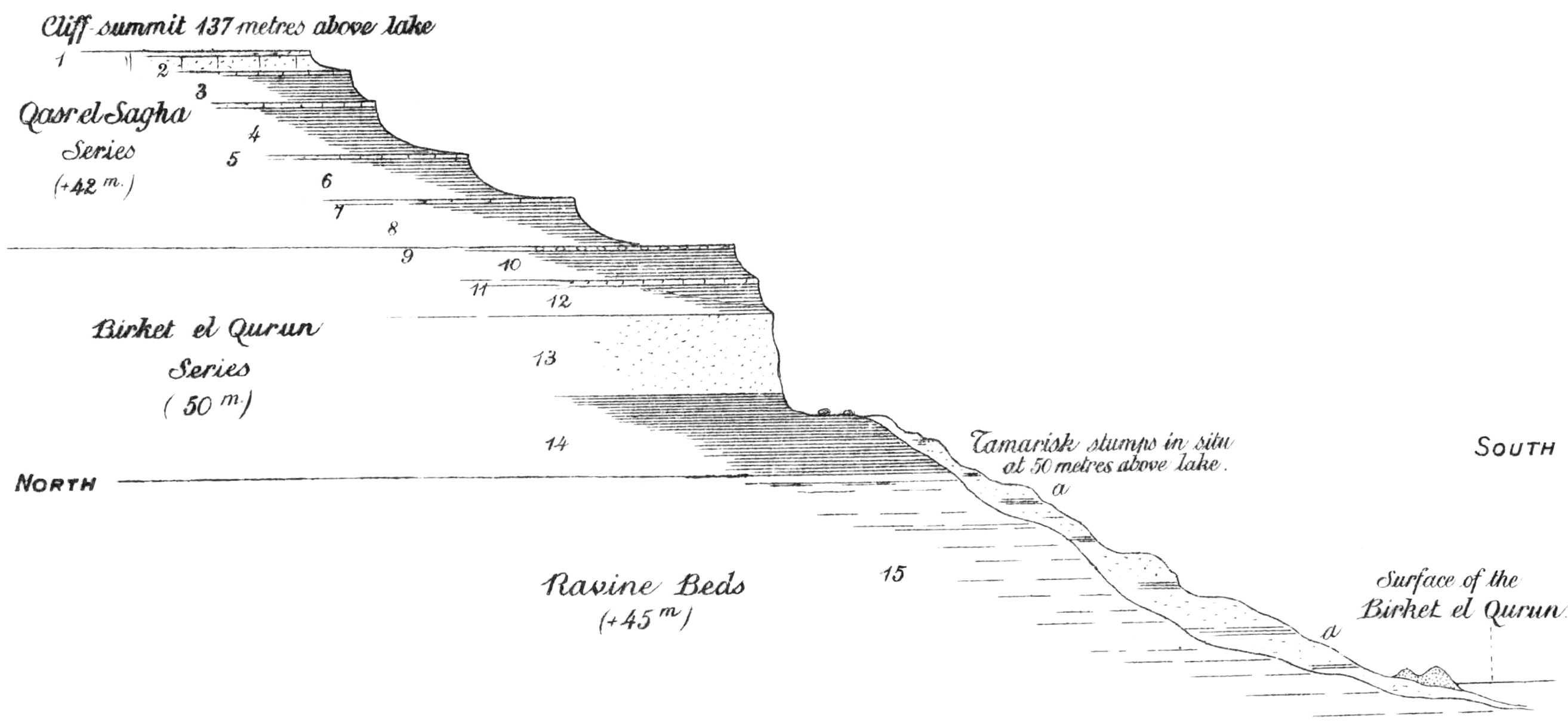 SECTION FROM THE BIRKET EL QURÛN THROUGH DIMÊ AND QASR EL SAGHA TO THE SUMMIT OF JEBEL EL QATRANI.