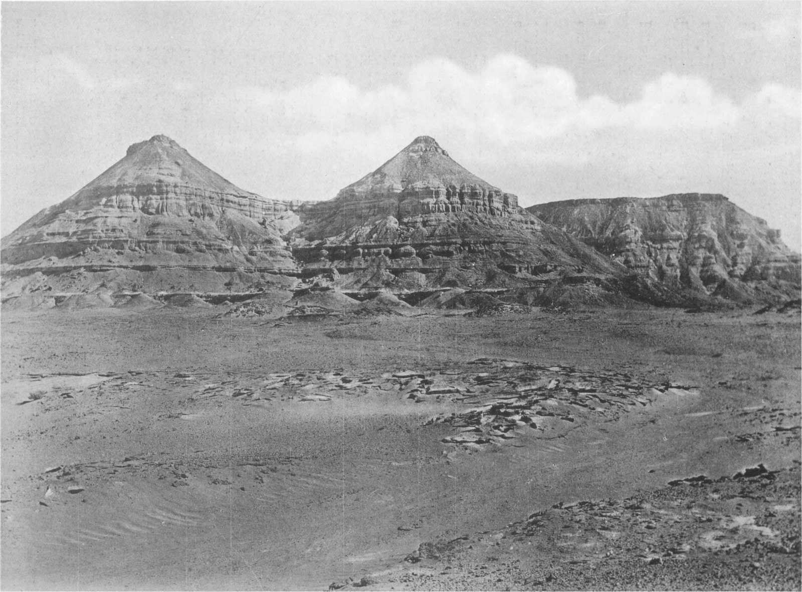 | IX. — | Upper beds of Fluvio-marine series with basalt cap, looking west from the eastern extremity of Jebel el Qatrani | „ | 53 |