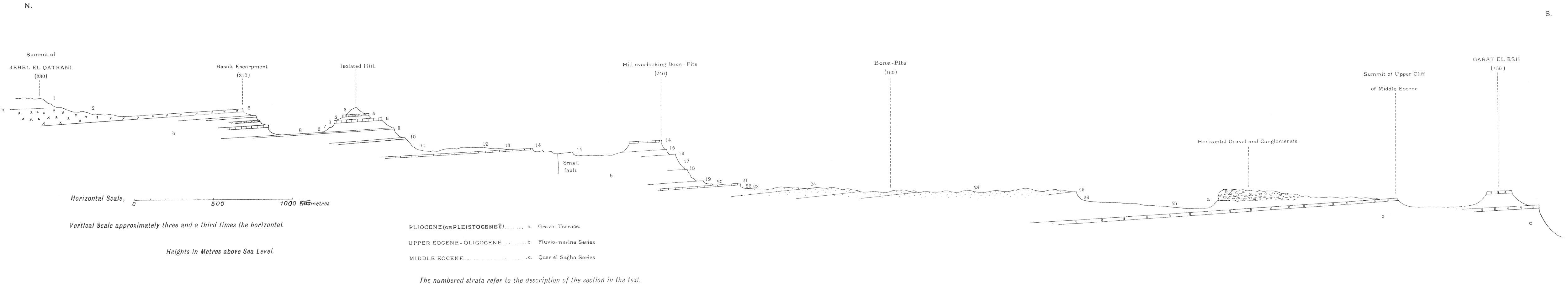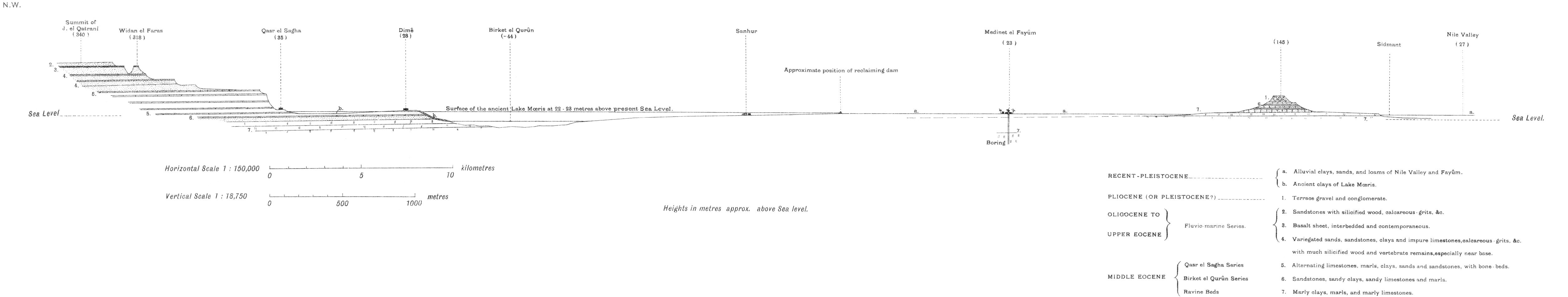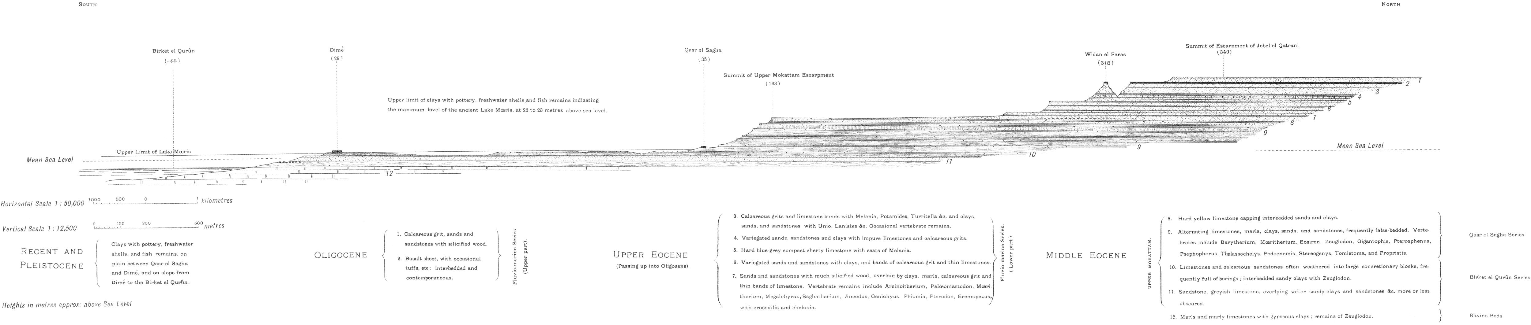 SECTION FROM SIDMANT EL JEBEL IN THE NILE VALLEY THROUGH MEDINET EL FAYÛM TO THE SUMMIT OF JEBEL EL QATRANI, NEAR WIDAN EL FARAS.