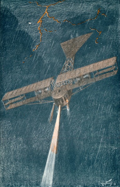 “Not too much,” he called again, warningly. “It’s black as your hat down there. I can’t see a thing.” By this time his head was inside once more. “You know we’ve had that wind behind us. You’re quarterin’ now, but you’ve got to allow for the wind; she’s a stiff one; you’ve got an awful drift and it’s right over the trees.”
