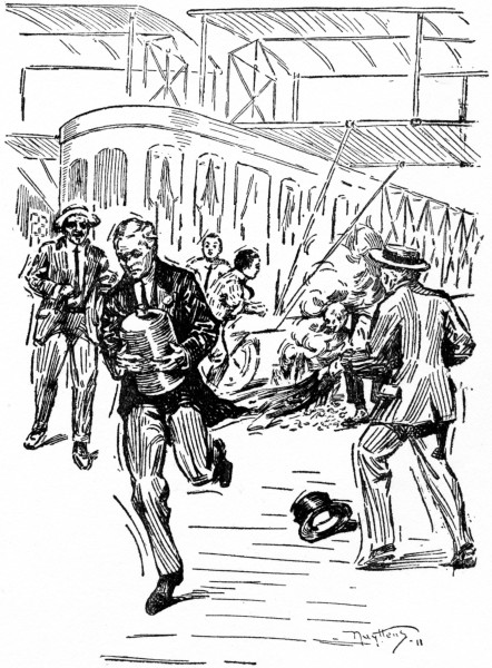 “Right,” commented Phil as his head again disappeared through the opening. For some moments neither boy spoke. In this silence, the rain pelting the glass sides seemed to grow louder, but this sound was dimmed by a constant whirr behind the glass compartment—a monotonous, unvarying sound as of large wheels in motion. Mingled with this was another tone—the unmistakable, delicate tremble of an engine or motor.