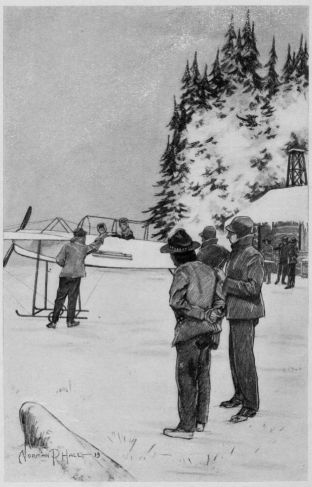 Philip’s supper was awaiting the return of the Gitchie Manitou, but its serving was long delayed. For an hour the conference that took place immediately upon the safe housing of the monoplane continued while each participant contributed his views. The conclusion was inevitable. Colonel Howell must proceed to Edmonton at once. There was a discussion as to whether this perilous flight should be made to Athabasca Landing, where Colonel Howell would have to make the last hundred miles of journey by train, or whether the trip through the Arctic skies should be made by compass directly to Edmonton.