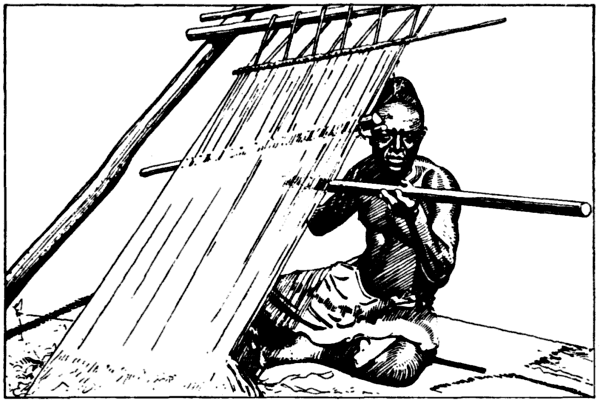 Fig. 28.—A Bushongo weaver at work. From Torday and Joyce, Notes Ethnographiques, Ann. du Congo, p. 182.