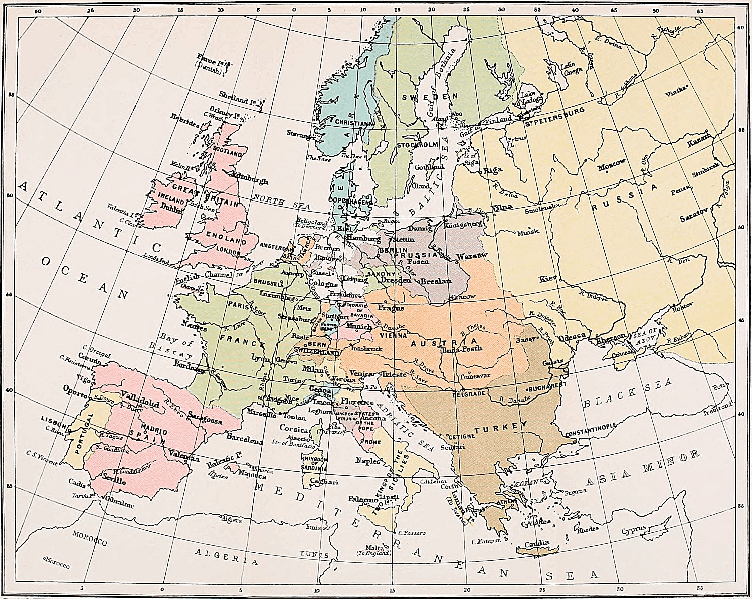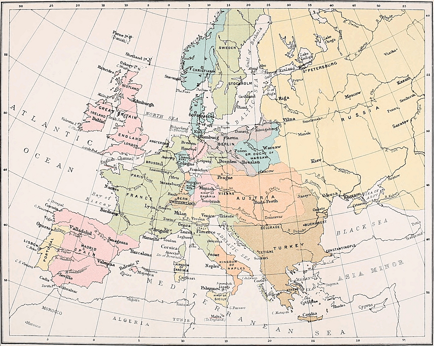 | The Congress of Vienna—Monarchs and Diplomatists present—History of the Congress—Treaty between France, Austria, and England—The Questions of Saxony and Poland—The German Confederation—Disposition of the provinces on the left bank of the Rhine—Mayence and Luxembourg—Reconstitution of Switzerland—Rearrangements in Italy—Questions of Murat, Genoa, and the Empress Marie Louise—Sweden—Denmark—Spain—Portugal—England’s share of the spoil—The Questions of the Slave Trade and the Navigation of Rivers—Close of the Congress—Preparations against Napoleon—The first reign of Louis XVIII. in France—Napoleon’s return from Elba—The Hundred Days—The Campaign of Waterloo—Occupation of Paris—Second Treaty of Paris—Napoleon sent to St. Helena—The Holy Alliance—Return of xviLouis XVIII.—Government of the Second Restoration—The Chambre Introuvable—Reaction in Spain and Naples—Territorial Results of the Congress of Vienna—The Principle of Nationality—Permanent Results of the French Revolution in Europe—The Problem of harmonising the Principles of Individual and Political Liberty with that of Nationality, | 336 |