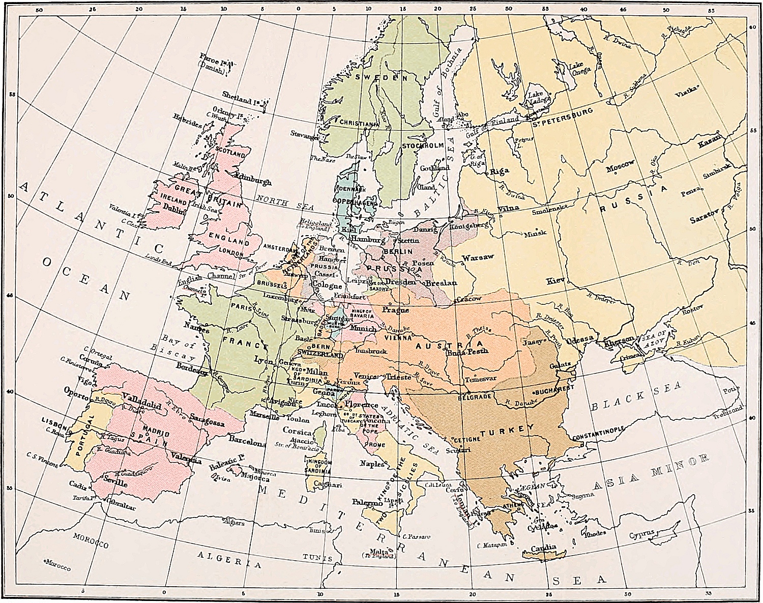 Such was the political, economical, intellectual and moral state of Europe in 1789, on the eve of the French Revolution. The whole continent was to pass through twenty-six years of almost unceasing war, at the end of which it was to emerge with new conceptions and new ideals of both political and social life. The new ideas seemed indeed to be checked, if not destroyed, in 1815, but once inspired into men’s minds they could not be forgotten, and their subsequent development forms the history of modern Europe in the nineteenth century.