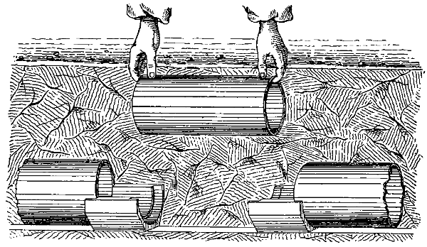 Public Health Act on the subject — Definition of sewer — Definitions of sewerage and sewage — Requirements of good system of sewerage — Position of sewers should be at back of houses — Form of notice to carry sewer through private lands — Hints for carrying out sewerage — Stamford’s joint — Pipe sewers — Drawing of various pipes — Causes of breakage — Causes of chokage — Separate system — Advantages of partial separation — List of different methods of sewerage — Dry systems251