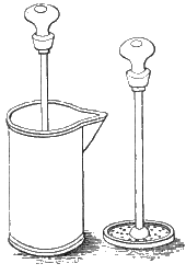 To do useful work, it is not necessary to possess a very elaborate or expensive instrument, but it is essential that the microscope be well made and good of its kind. As high powers are often required in the examination, both of hide sections and of ferments, which are the principal objects of investigation in a tannery, it is of the first importance that the fine adjustment should be perfectly steady, without vibration or backlash. This, in the writer's experience, is never the case with cheap microscopes, in which the fine adjustment is made by a screw at the side of the tube moving the nose by means of a lever. A much more satisfactory arrangement is that in which the whole body of the microscope is raised or lowered by a screw in a pillar at the back of the stand on which it slides. A rack for the coarse adjustment is useful, but not essential. If a sliding tube only is provided, it must be tight enough not to slip, but must move easily up and down with a sort of screwing movement. A mechanical stage is not at all necessary, and for most purposes one of black glass is better as well as cheaper. The diaphragm for regulating the light should be as near level with the surface of the stage as possible, and when examined with a low power should appear in the centre of the field. For research work on the minuter ferments, an achromatic condenser and the finest oil- or water-immersion lenses are necessary, but directions for this are beyond the scope of the present work. It may, however, be mentioned that Prof. « 10 » Flügge,[A] a first-class authority on the subject, especially recommends Abbé's illuminating apparatus as made by Zeiss.