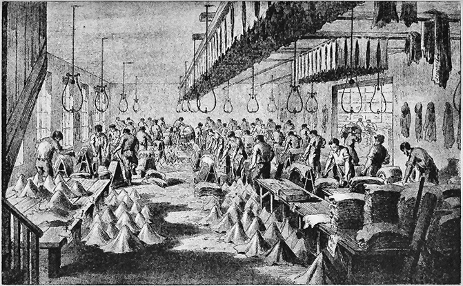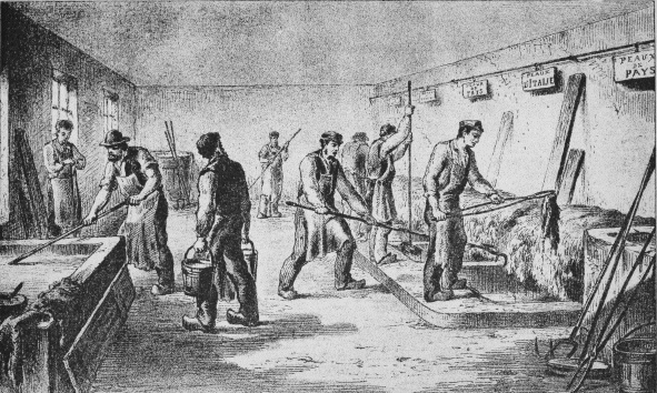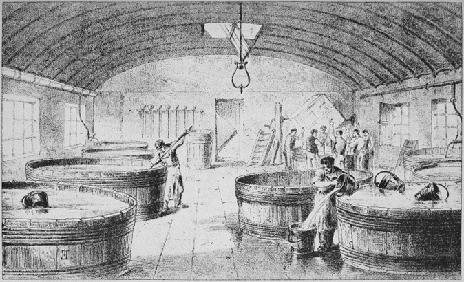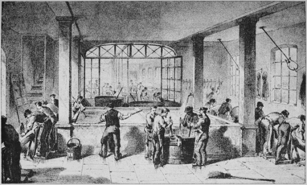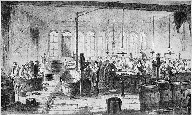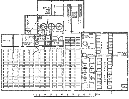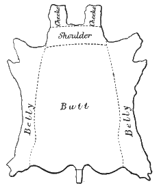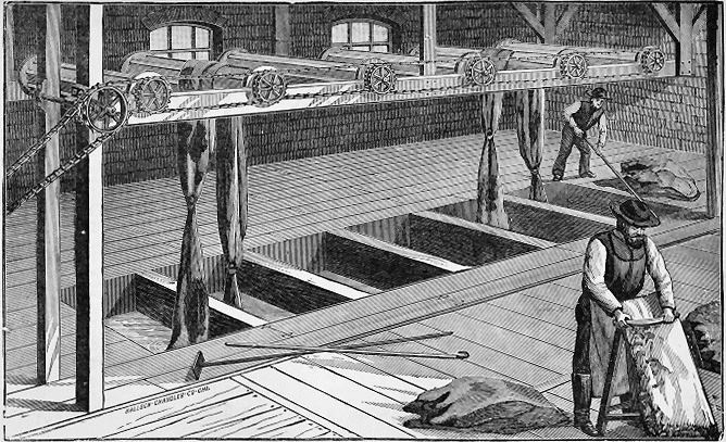 Leather manufacture may be broadly divided into two stages: "tanning," in which the raw hide is converted into the imputrescible and more or less flexible material known as "leather"; and "currying," in which this leather is further manipulated, and treated with fatty matters, to soften and render it more waterproof, and to improve its appearance. Glove-kid, and certain other leathers, however, are not tanned at all, but "tawed," or prepared with a mixture in which alum and salt are the most active ingredients; chamois, "shammy," or "wash" leather, is produced by fulling with oil alone, and many leathers can scarcely be said to be curried, although more or less oil is used in the final processes of "finishing" or "dressing." The first subject to be treated of in this work will be the operation of tanning, properly so called, taking for example the tannage of sole- and belting-leather. This demands thorough explanation, in both its practical and theoretical aspects, not only because it is one of the most important branches of the trade, but because the principles involved are those which equally underlie all other tanning methods. The next to be dealt with will be the modifications of the process which are necessary in tanning the more flexible leathers used for boot-uppers, hose-pipes, and saddlery purposes; then the currying of these leathers; and finally, the manufacture of moroccos, Russian, and japanned leathers, calf- and glove-kid, &c.