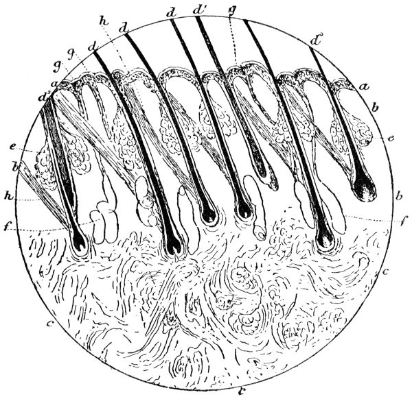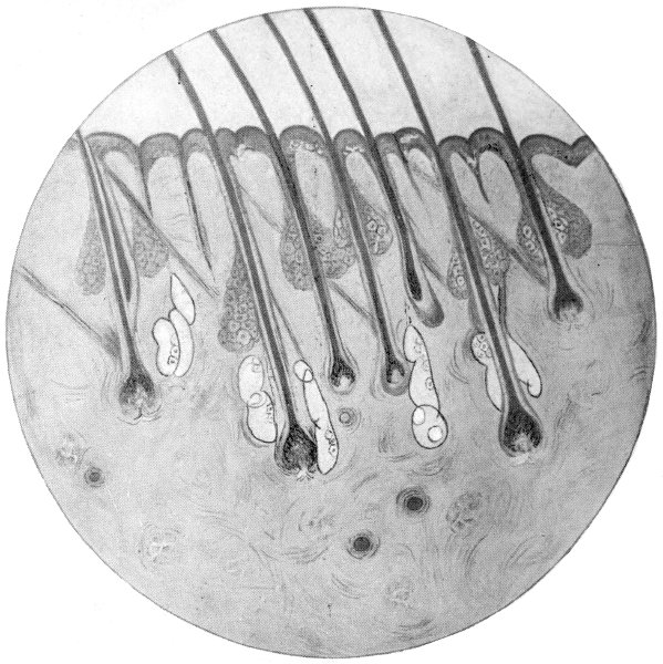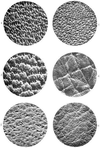 Similarity of Mammalian skins — Development of skin — Structure of calf-skin — The epidermis — The structure of hair — The sebaceous glands — The development of hair — The hair-sheath — The hair-muscle — The hyaline layer — The corium — Connective tissue — Fat cells — Striped muscle — Elastic fibres — The unhairing process — The sweating process PAGE 46