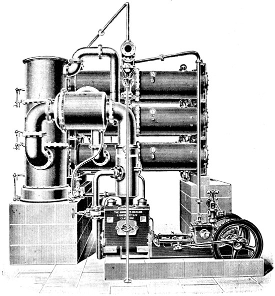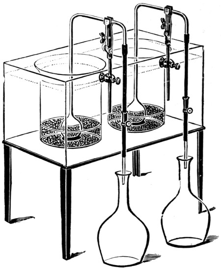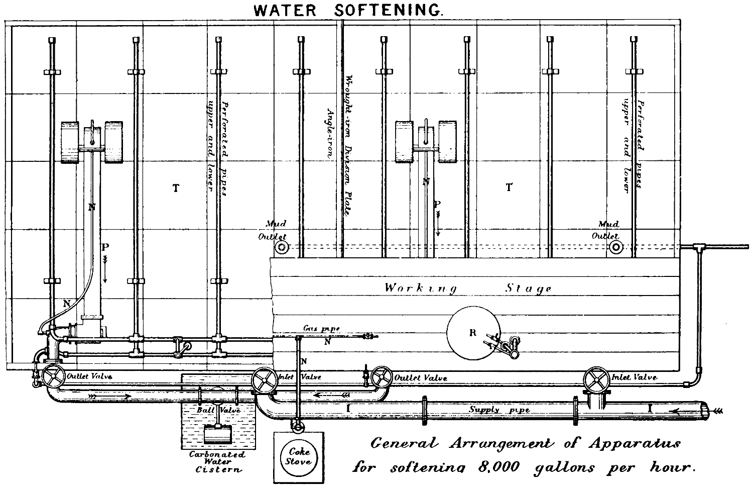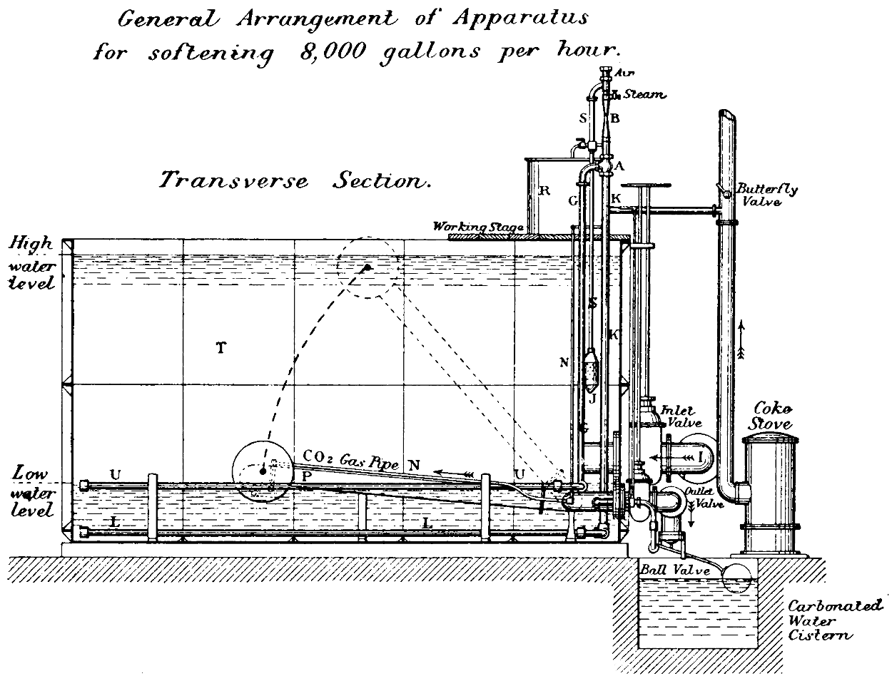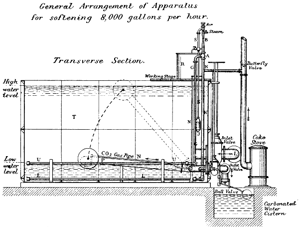 Impurities of natural water — Hardness — Soap test — Temporary hardness — Clark’s softening process — Archbutt and Deeley’s softening apparatus — Other appliances — Effect of temporary hardness in tanning and dyeing — Permanent hardness — Boiler scale — Mud — Iron — Alumina — Soda — Copper, lead, etc. — Sulphuric acid — Nitrates and Nitrites — Chlorine — Carbonic acid — Silicic acid — Effect of hardness on plumping — Peaty waters PAGE 93