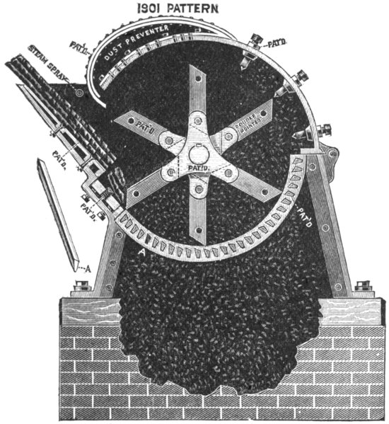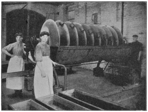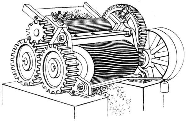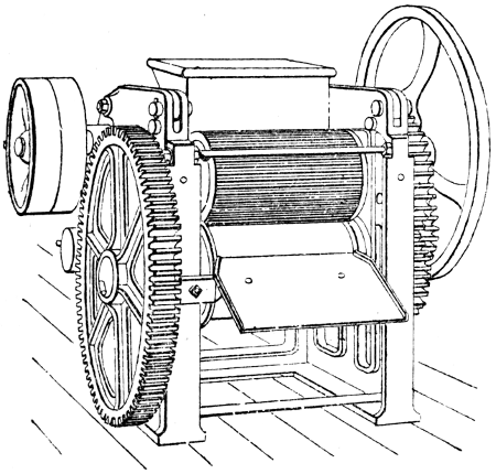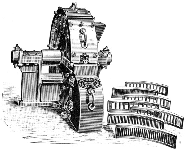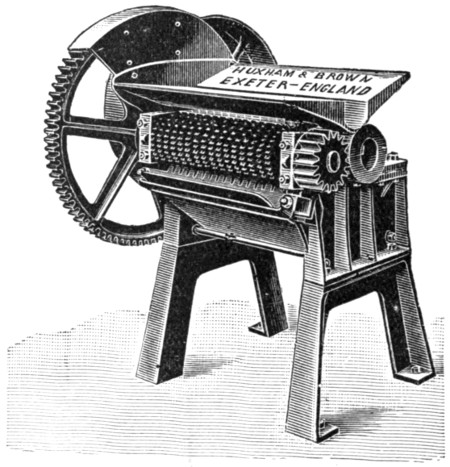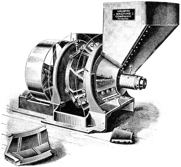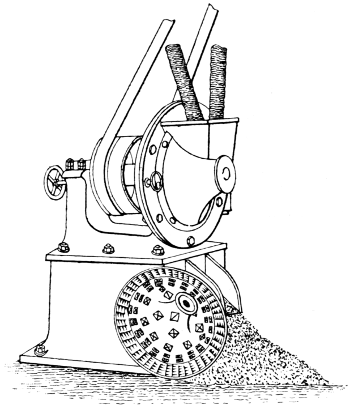 Primitive methods of grinding — The bell mill or coffee mill — Disc mills — Disintegrators — Carr’s disintegrator — Carter’s disintegrator — Adjustment of disintegrators — The Williams pulveriser — Myrobalans and Valonia crushers — Sawing mills — Shaving mills — Dyewood cutting machines — Screening of ground materials — Hatching of bark — Disintegrators and fire insurance — Dust from disintegrators — Chain conveyors — Belt conveyors — Vibrating conveyors PAGE 316