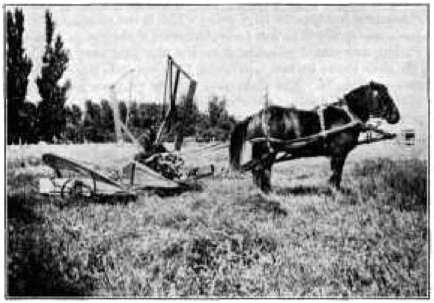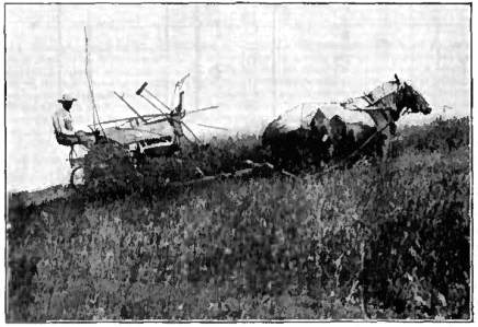 The ordinary mowing machine is one of the most unsatisfactory devices used for harvesting this crop, as the subsequent handling necessary to place the plants in windrows or cocks causes much of the seed to shatter. The use of this machine for this purpose should be avoided whenever possible.