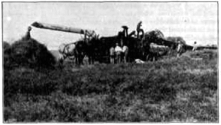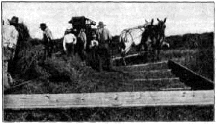 Fig. 13.—Thrashing sweet clover with a grain separator. Note the large sleds used for handling the plants from the field to the thrashing machine.