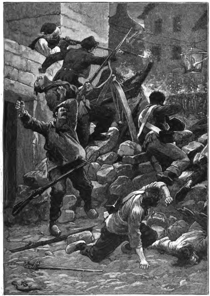 Constantly engaged in political agitation, the students of Paris bore a formidable part in the Revolution of 1830. On the 26th of July the famous Ordonnances were issued. The same day secret meetings were held by the students, at which they resolved to take up arms. In the evening, at the Chaumière ball, the quadrilles were stopped in virtue of the new decrees. A thrill of indignation ran through the assembly. The orchestra played the Marseillaise, and all present sang it in chorus. Hands were grasped, and vows uttered to conquer or die for liberty. The day afterwards intrepid students denounced the ordonnances in the public streets and called the citizens to arms. The pupils of the Polytechnic School passed the night in improvising implements of war, and with Vanneau, a bold spirit, at their head, scaled the walls and hurried to the barricades, where the students of the capital were mingled with the people. Already several had fallen dead. One student of medicine, named Papu, seeing his column, composed of youths and working men, disperse before a murderous musketry fire, sprang forward and cried—“I will show you how to die!” He was almost shattered to pieces, though he managed before expiring to gasp an exhortation to his comrades to continue the struggle. Rennes, his native town, honoured him with a monument. At the attack on the Hôtel de Ville another medical student, Labarbe, had both his legs broken, dying two days afterwards from the effects of the amputation, which he had undergone with a pipe in his mouth. Many a deed of heroism was done at this juncture by the Paris students, fighting like the populace for a Republic, which they did not obtain, and for which a disappointing compromise was furnished in the person of Louis Philippe.