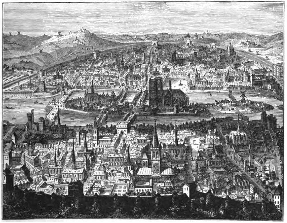 It was doubtless the schools, however, which chiefly contributed to make Paris the powerful and active agent of civilisation which that capital so early became. They formed a theatre of discussion for a vast laboratory of ideas. Many a student was beheaded, hanged, or burned in a wooden cage on accusations of heresy; for liberty of conscience, that is to say. “We should greatly deceive ourselves,” says Antonio Watripon, “if we judged the students of other days by their external aspect—drunken challengers, beaters of tavern-keepers, brawlers in the Pré aux Clercs, ravishers of tradesmen’s wives. It is always the same picture on the surface; but underneath there is something which is not at first perceived, and which is marching ever forward—thought! A poor student is persecuted by the parliament. The rector is called to the bar and commanded to imprison the suspected heretic, who, however, has the {357} good fortune to find refuge in Saintonge. Soon the whole world will know that his name is Calvin. The Protestant books are burnt and the printers cast into the dungeons of the bishopric. These persecutions serve only to swell the ranks of the reformers.”